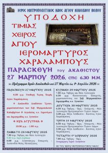 Η Σχολή Αγιογραφίας «Δια χειρός» της Ιεράς Μητροπόλεως Δημητριάδος συμπλήρωσε φέτος είκοσι χρόνια λειτουργίας. Με την ευκαιρία της σημαντικής αυτής επετείου και της έναρξης του νέου εκπαιδευτικού έτους, ο Σεβ. Ποιμενάρχης μας κ. Ιγνάτιος θα τελέσει τον αγιασμό στην εκδήλωση που θα γίνει στο Πολιτιστικό Κέντρο Νέας Ιωνίας (Σταδίου με Μανδηλαρά) την Τρίτη 1η Οκτωβρίου 2019 στις 7.30μ.μ. Η Σχολή Αγιογραφίας είναι μία προσπάθεια της Εκκλησίας να βοηθηθούν νέοι άνθρωποι στην αναζήτηση εργασίας και εισοδήματος ή να εντρυφήσουν, όσοι επιθυμούν, στην ειρηνόχυτη τέχνη της ορθόδοξης εικόνας.
