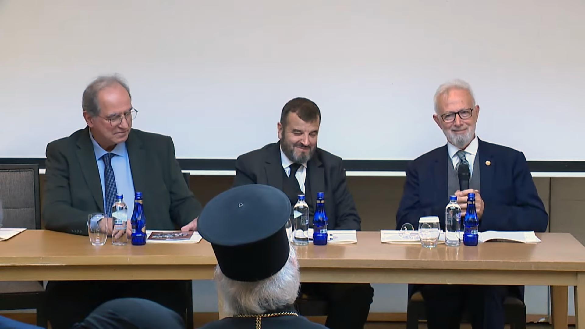 In the first session that followed, chaired by Professor Emeritus Konstantinos Delikostantis (University of Athens) on the topic “The Theological and Spiritual Journey of the Metropolitan of Pergamon John Zizioulas,” the first speaker, Rev. Protopresbyter Prof. Dr. Dimitrios Linos (Athens Medical School) spoke on the topic “Known and unknown human moments of Metropolitan of Pergamon, John Zizioulas,” presenting his personal relation with the Metropolitan of Pergamon, especially in the last years of his life. Then Dr. Nikolaos Asproulis (Deputy Director, Volos Academy for Theological Studies) spoke on the topic “From Fr. Georges Florovsky to Metropolitan John of Pergamon: Continuity and Discontinuity,” where, based on some of their fundamental texts, he attempted to highlight similarities and differences in the theological methodology of the two thinkers and their significance for the present and the future of Orthodox theology. The last speaker of the session, Rev. Hieromonk Dr. Nicholas Sakharov (Monastery of Saint John the Baptist, Essex, UK) spoke on the topic “St. Sophrony of Essex and Metropolitan John of Pergamon,” where he attempted to point out the close theological and spiritual relationship between the two preeminent figures of modern Orthodoxy.