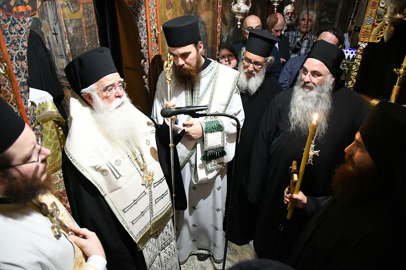 Στην προσφώνησή του ο Σεβ. Ποιμενάρχης κ. Ιγνάτιος τόνισε πως «τα αληθινά κι αυθεντικά θαύματα είναι τα θαύματα που συντελούνται στις ψυχές των ανθρώπων και ζούμε και βιώνουμε θαύματα στη ζωή μας, έστω κι αν δεν το αντιλαμβανόμεθα στο βαθμό που θα έπρεπε. Κι απόψε κι εγώ προσωπικά ζω ένα θαύμα· με την έκπληξη του πλήθους των πιστών που έχει πλημμυρίσει το μοναστήρι μας. Δεν είναι απλό πράγμα, σ’ αυτή τη σύγχρονη εκκοσμικευμένη εποχή, οι άνθρωποι να προσεγγίζουν τα μοναστήρια.Μέσα σε αυτά τα είκοσι χρόνια, σε αυτόν εδώ τον τόπο που έχει καθαγιαστεί από τα δάκρυα των μοναχών, ζούμε ένα σύγχρονο θαύμα της τοπικής μας Εκκλησίας και της Ορθοδοξίας ταυτόχρονα· το γεγονός ότι νέοι άνθρωποι, εμπνευσμένοι και έχοντας μέσα τους από την αγάπη του Χριστού, με αληθινό θείο έρωτα, επανδρώνουν τα μοναστήρια μας και στην περίπτωση του μέχρι πρότινος Ευαγγέλου, βλέπουμε μια οικογένεια με δύο παιδιά, δύο μοναχούς — κάτι που αποτελεί σημάδι της ζωντανής πίστης και της ευλογίας του Θεού».
