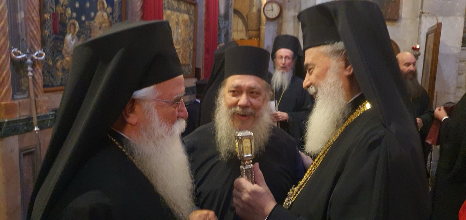 Κατά τη διάρκεια της παραμονής του, ο Σεβασμιώτατος συμμετείχε στις ιερές ακολουθίες του Μεγάλου Μηνύματος και της χειροτονίας του νέου Αρχιεπισκόπου, οι οποίες τελέστηκαν στον Ιερό Πατριαρχικό Ναό των Αγίων Κωνσταντίνου και Ελένης και στον Πανίερο Ναό της Αναστάσεως στα Ιεροσόλυμα, προεξάρχοντος του Πατριάρχου Ιεροσολύμων κ.κ. Θεοφίλου.
