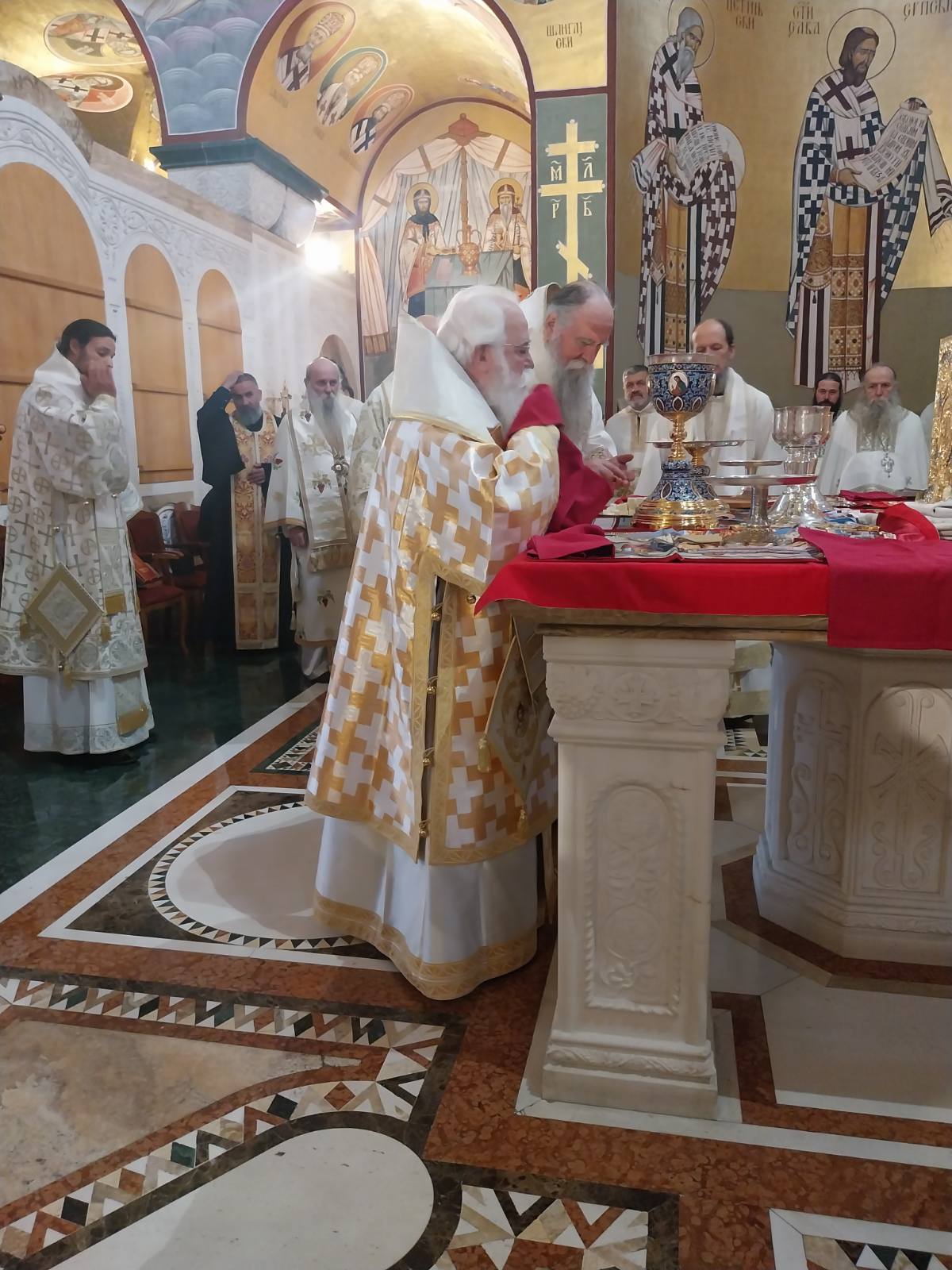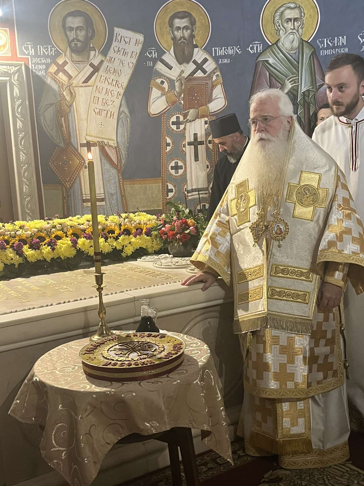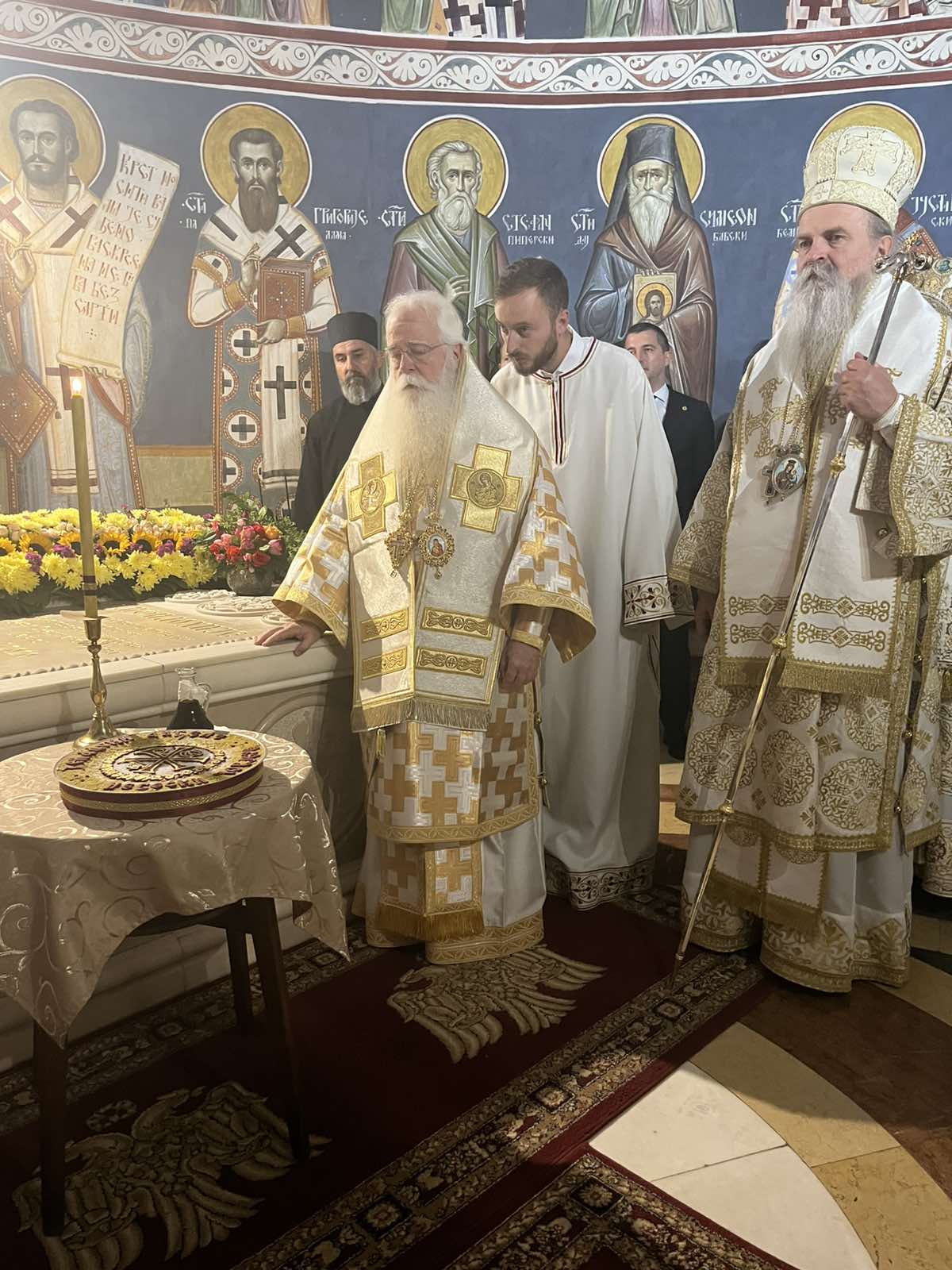 Την Πέμπτη, 30 Οκτωβρίου 2025, επ’ ευκαιρία της πέμπτης επετείου της κοίμησης του μακαριστού Μητροπολίτη Αμφιλοχίου, τελέστηκε η Πολυαρχιερατική Θεία Λειτουργία, προεξάρχοντος του Σεβασμιωτάτου Μητροπολίτου Μαυροβουνίου και Παραθαλασσίας Ιωαννικίου, με τη συλλειτουργία των Σεβασμιωτάτων Μητροπολιτών: Πτολεμαΐδας και Άκρας Μακαρίου από το Πατριαρχείο Ιεροσολύμων, Δημητριάδος και Αλμυρού κ.Ιγνατίου από την Εκκλησία της Ελλάδος, Μιλέσεβου Αθανασίου, Ράσκας-Πριζρένης Θεοδοσίου, Ζαχουμλίας-Ερζεγοβίνης και Στον-Πριμόρσκο Δημητρίου, Μπουντιμλίας-Νίκσιτς Μεθοδίου και των Σεβασμιωτάτων Επισκόπων Πάκρατς-Σλαβονίας Ιωάννη και Διοκλητίας Παϊσίου, πλήθους κληρικών, μοναχών και πιστού λαού.