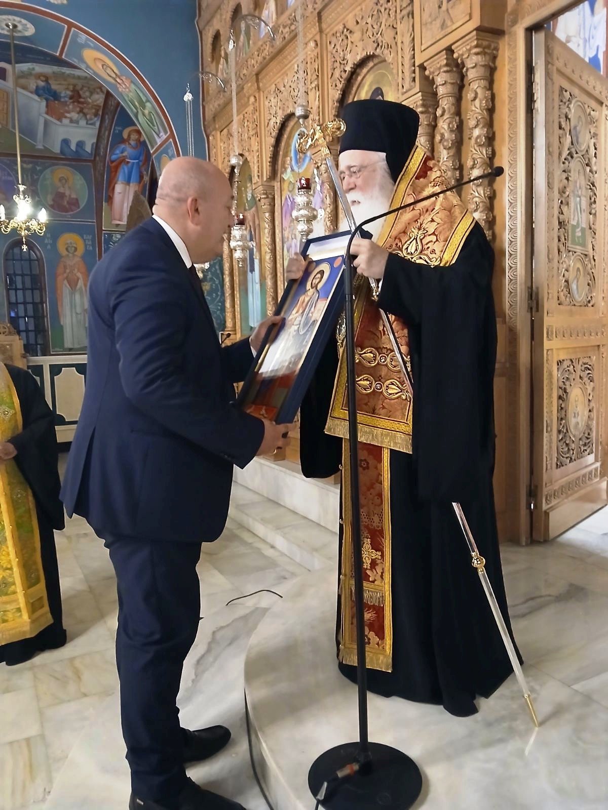 Ο Σεβασμιώτατος τέλεσε αρτοκλασία υπέρ υγείας των Νομικών και ευχαρίστησε από καρδιάς τον απερχόμενο Πρόεδρο του Συλλόγου κ. Κωνσταντίνο Στρατηγόπουλο, για την συνεργασία με την Τοπική μας Εκκλησία, που βασίστηκε στην εμπιστοσύνη. «Στο πρόσωπό σας τιμούμε όλους τους συναδέλφους σας, λειτουργούς της Δικαιοσύνης», επεσήμανε ο κ. Ιγνάτιος. «Ο λαός μας εμπιστεύεται την Δικαιοσύνη, παρά το γεγονός ότι στην δύσκολη εποχή μας οι άνθρωποι πολύ εύκολα κατακρίνουμε θεσμούς και πρόσωπα. Στον τόπο μας διατηρούμε την εμπιστοσύνη μεταξύ των θεσμών, εργαζόμενοι για την ενότητα του λαού μας». Ο Σεβασμιώτατος προσέφερε στον κ. Στρατηγόπουλο την εικόνα του Κυρίου, ως έκφραση αγάπης και ευχαριστίας.