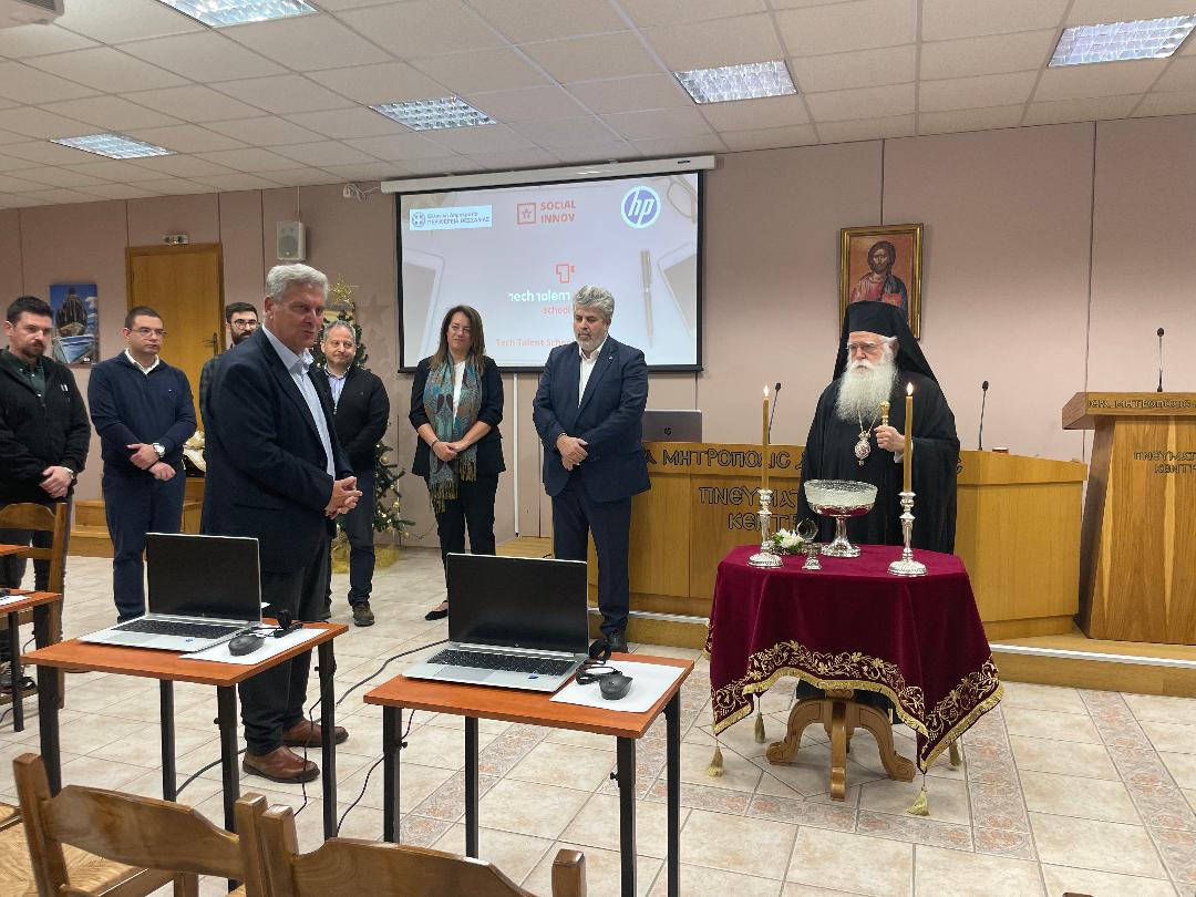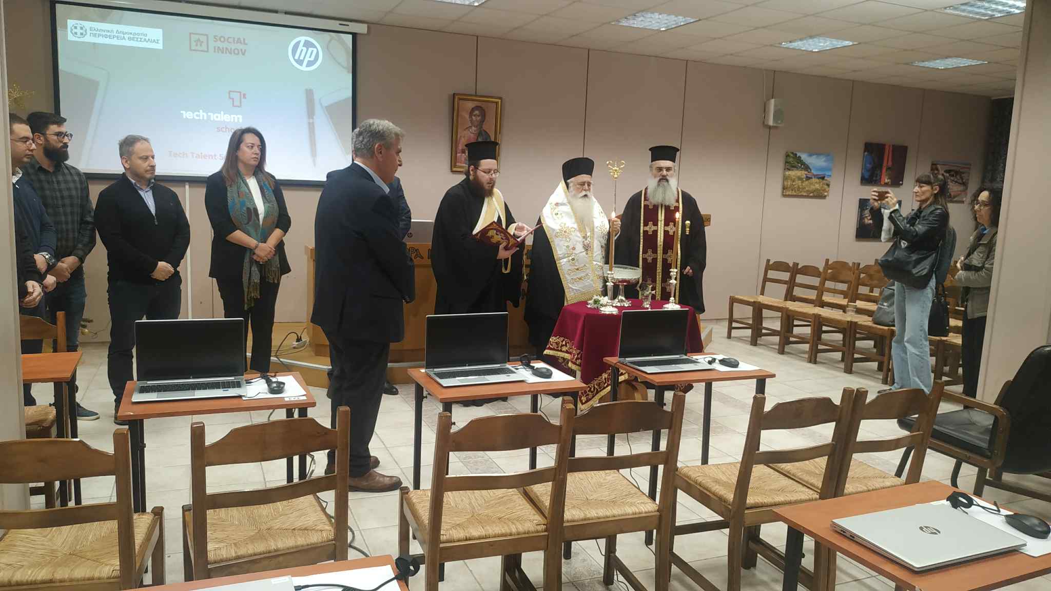 Παρόντες στον αγιασμό ήταν ο Θεματικός Αντιπεριφερειάρχης Ψηφιακής Διακυβέρνησης και Εξυπηρέτησης Πολιτών Περιφέρειας Θεσσαλίας κ. Γιάννης Αναστασίου, ο Διευθύνων Σύμβουλος της εταιρείας HP κ. Νίκος Χρηστάκης και η Διευθύντρια της Αστικής Μη Κερδοσκοπικής Εταιρείας Socialinnov κ. Στέλλα Ψαρρού.