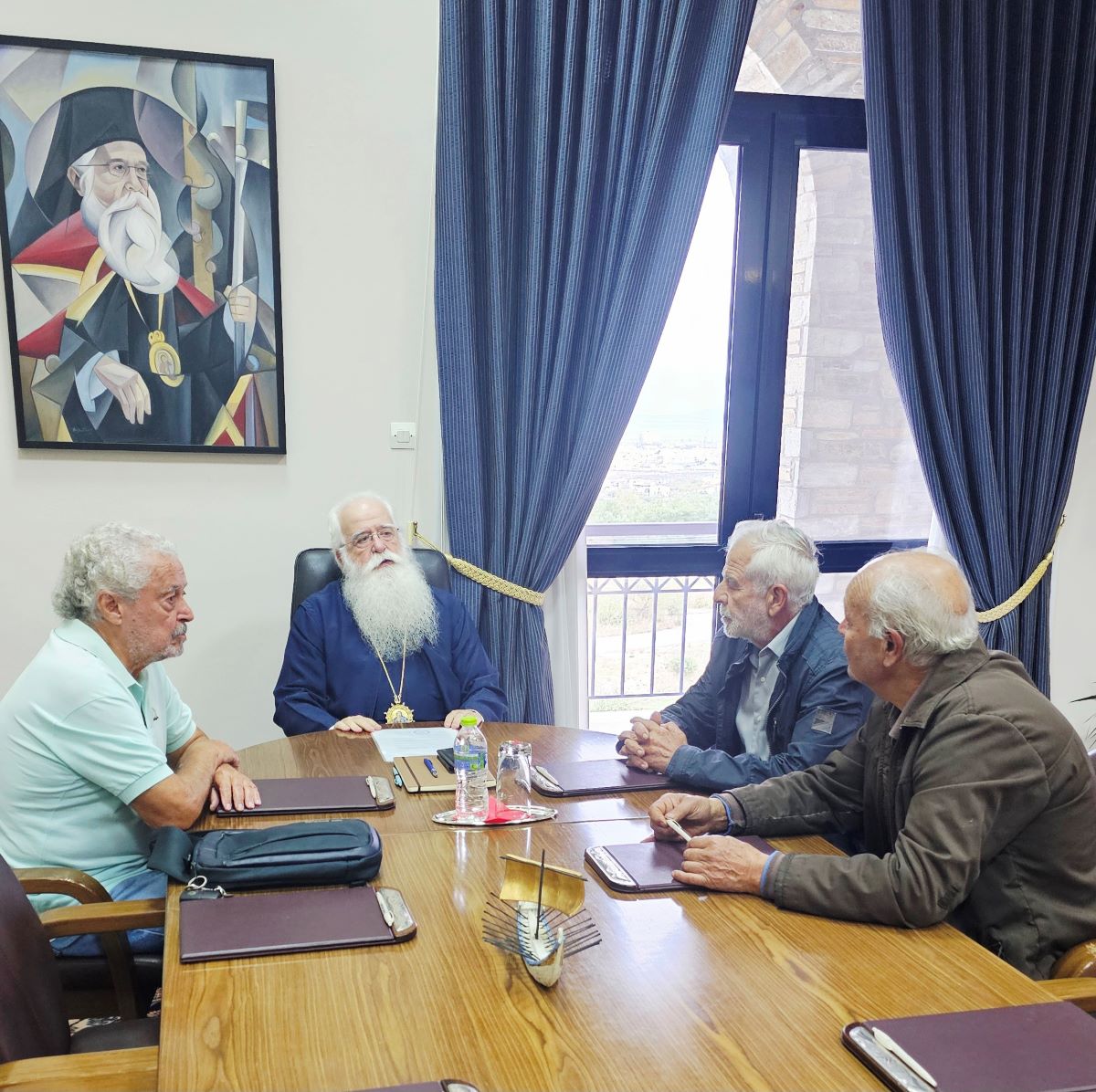 Στη συνάντηση παρευρέθηκαν ο Πρόεδρος κ. Ναπολέων Κολοβός και τα μέλη κ. Στέλιος Λημνιός και κ. Παντελεήμων Μακρογιάννης, οι οποίοι παρουσίασαν στον Σεβασμιώτατο το έργο και τους στόχους του Συλλόγου και τον προσκάλεσαν να παραστεί στην επίσημη εκδήλωση γνωριμίας και παρουσίασης δράσεων.