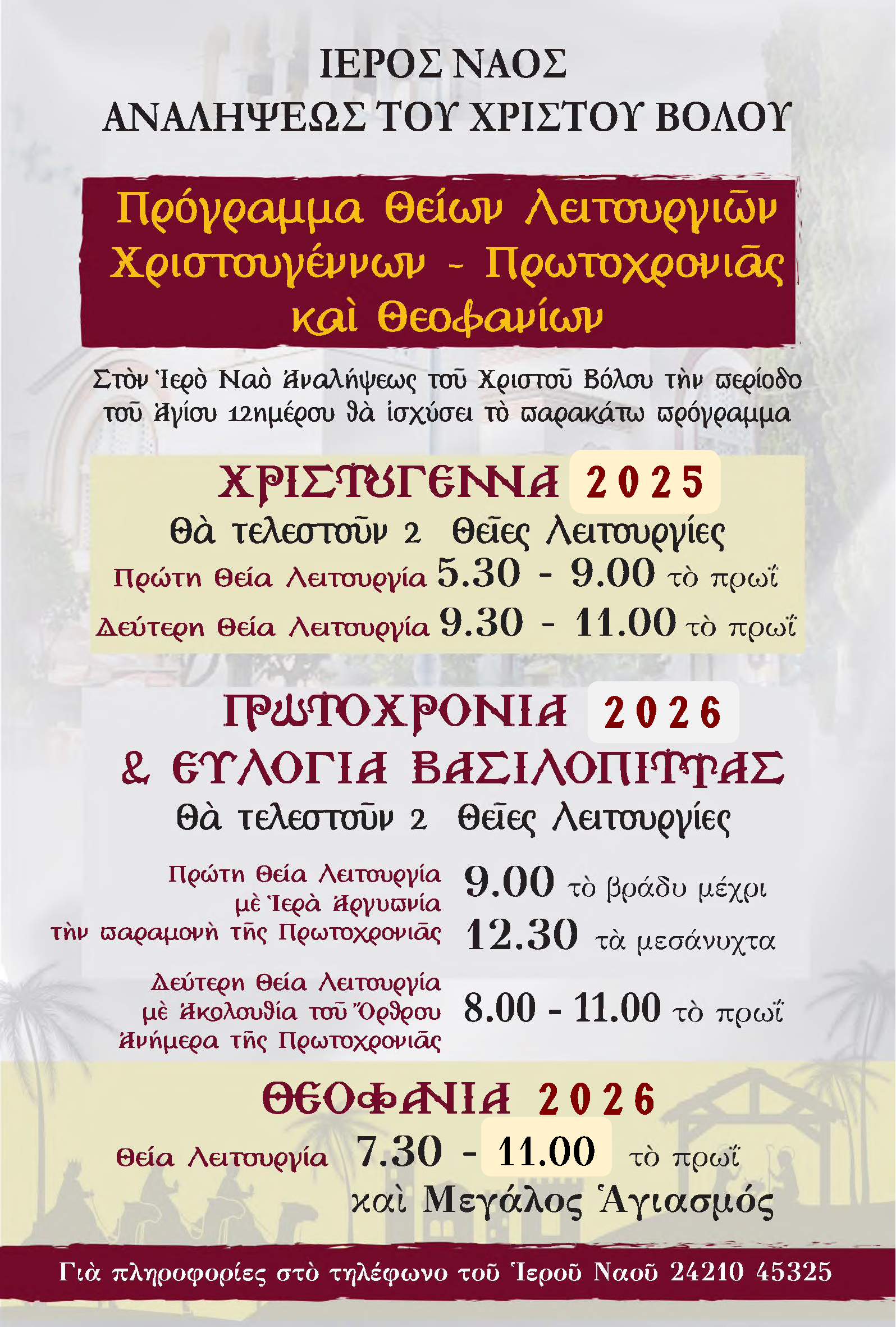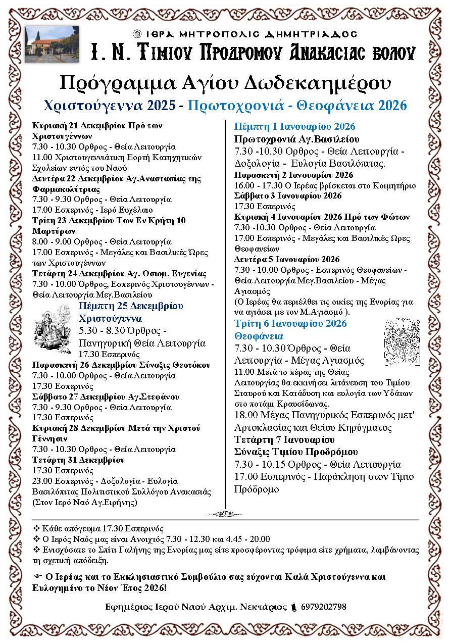 Ι.Ν. Αγίου Δημητρίου Ι.Ν. Αγίων Αποστόλων Πέτρου & Παύλου Ν.Ιωνίας Ι.Ν. Αγίου Σπυρίδωνος Ν. Ιωνίας Βόλου Ι.Ν. Γενεσίου της Υπεραγίας Θεοτόκου Γορίτσας Ι.Ν. Αγίων Δώδεκα Αποστόλων Αγριάς Ι.Ν. Τιμίου Προδρόμου Ανακασιάς Ι.Ν. Εισοδίων Θεοτόκου Άνω Βόλου Ι.Ν. Αγίων Αναργύρων Πορταριάς Ι.Ν. Γεννήσεως Θεοτόκου Φυτόκου Ι.Ν. Αγίου Ανδρέα Φυτόκου Ι.Ν. Κοιμήσεως Θεοτόκου Καλών Νερών Ι.Ν. Ευαγγελιστρίας Άνω Γατζέας Ι.Ν. Προφήτου Ηλιού Νέων Παγασών Ι.Ν. Τιμίου Σταυρού Κάτω Γατζέας Ι.Ν. Αγίου Νικολάου Πορταριάς |