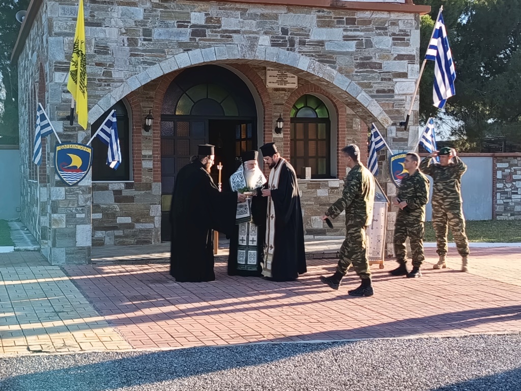 Κλείνοντας την ομιλία του, ευχήθηκε σε όλο το προσωπικό υγεία, δύναμη και επιτυχία στο έργο και στην πορεία τους, εκφράζοντας την εμπιστοσύνη και την αγάπη της τοπικής Εκκλησίας προς τις Ένοπλες Δυνάμεις, λέγοντας πως «σας εμπιστευόμαστε απόλυτα και σας αγαπάμε ειλικρινά», και προσέφερε σε όλους μια εικόνα της Παναγίας Ξενιάς, της θαυματουργού προστατίδος της Μητροπόλεως, ως ευλογία και ένδειξη ευγνωμοσύνης για την προσφορά τους.