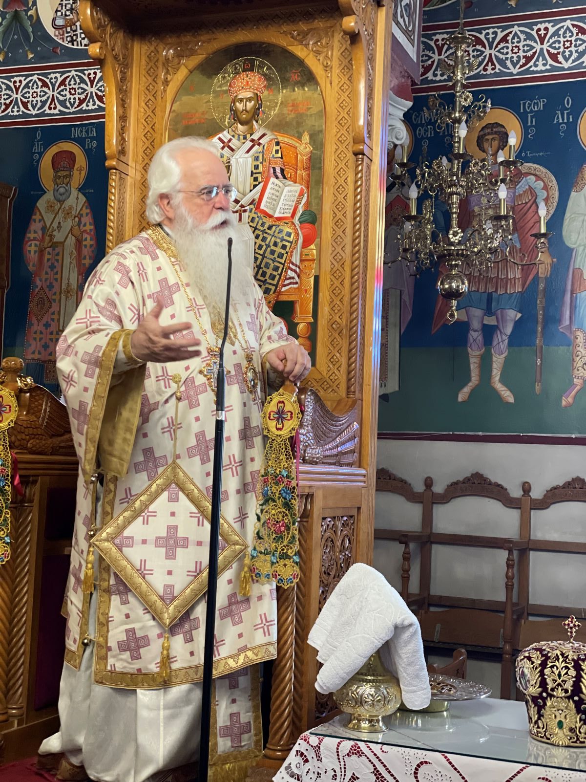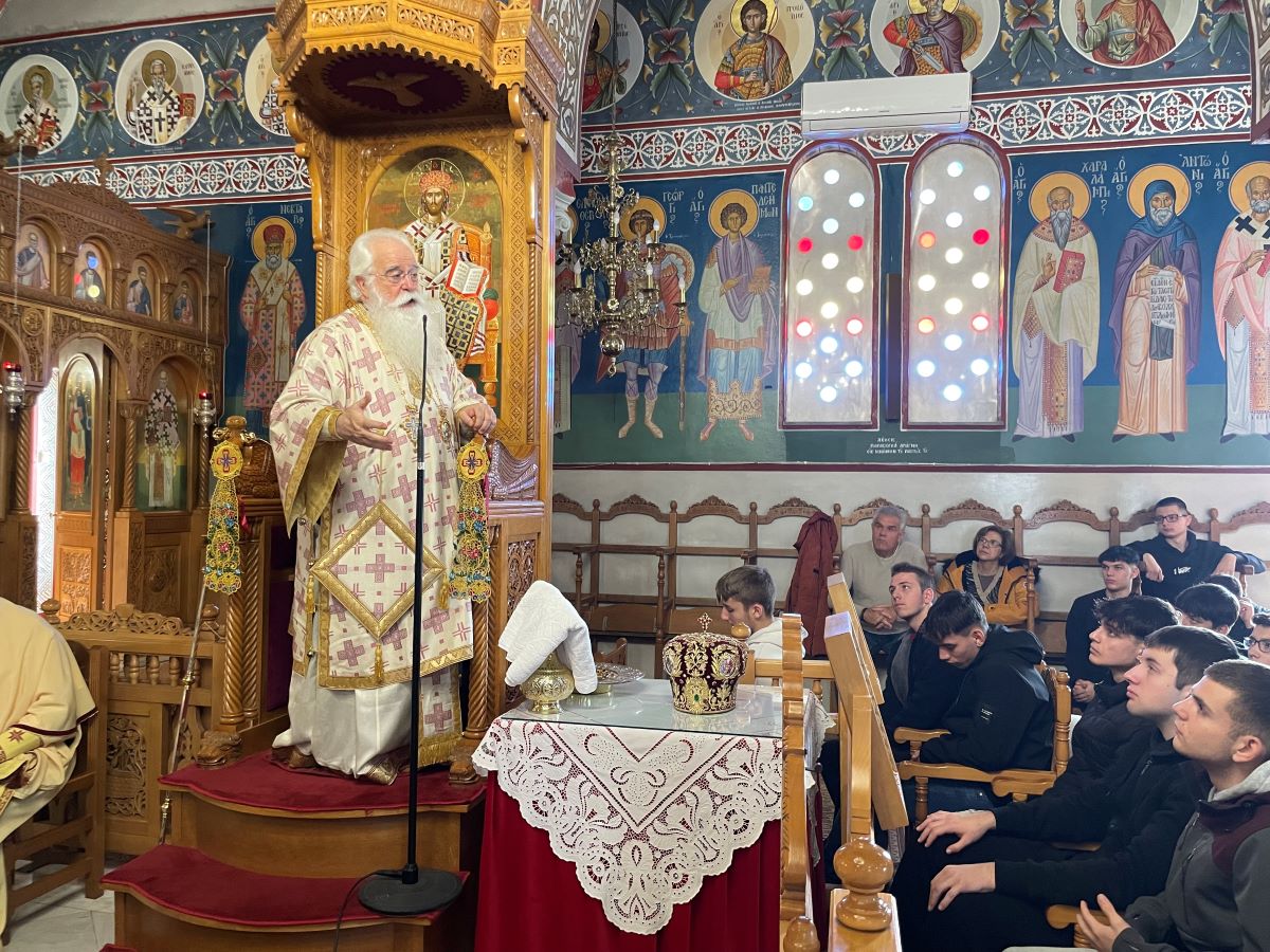 Από τη μεριά του, ο Σεβασμιώτατος εξέφρασε τη χαρά του για την ευκαιρία να λειτουργήσει με τους μαθητές και τις μαθήτριες, υπογραμμίζοντας ότι, «μαζί συλλειτουργήσαμε σήμερα, γιατί μόνος μου ούτε εγώ μπορώ να τελέσω αυτή τη Θεία Λειτουργία, ούτε εσείς χωρίς τους ιερείς μου. Έτσι λειτουργούμε, όλοι μαζί»  Στη συνέχεια αναφέρθηκε στο βαθύτερο νόημα της Θείας Ευχαριστίας, τονίζοντας ότι «το ψωμί και το κρασί γίνονται Σώμα και Αίμα Χριστού, και όταν κοινωνούμε γινόμαστε ένα με τον Χριστό και ένα μεταξύ μας, σαν αδέρφια, σαν ένα σώμα». Επισημαίνοντας ότι η Θεία Κοινωνία είναι πηγή ενότητας και αληθινής αγάπης, προσέθεσε: «αν κοινωνώ από ένα ποτήρι δεν μπορώ να πονάς εσύ και να μην πονάω, δεν μπορώ να σε περιφρονώ, να σε ξεχωρίζω ή να σε κατηγορώ. Αν είμαι του Χριστού, πρέπει να κάνω αυτό που θα έκανε ο Χριστός»