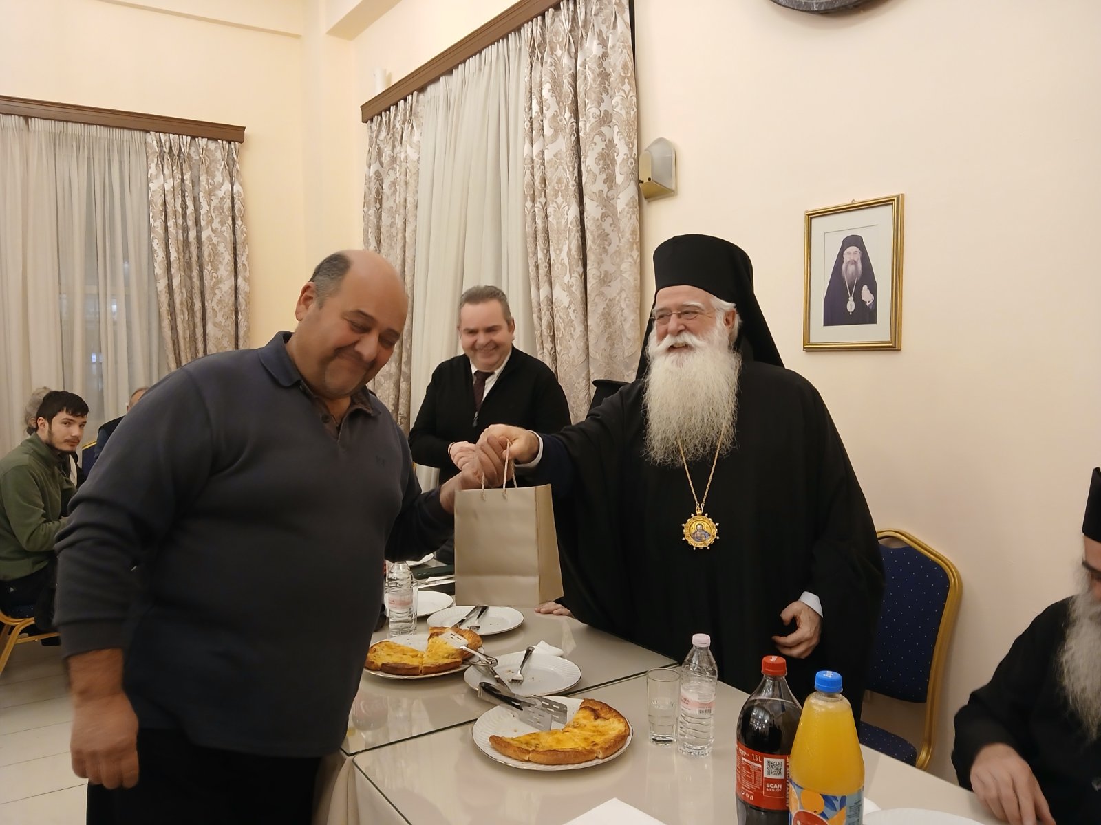 Την Πρωτοχρονιάτικη Βασιλόπιτα του Συνδέσμου Ιεροψαλτών «Όσιος Ιωάννης ο Κουκουζέλης» και της Σχολής Βυζ. Μουσικής της Ιεράς Μητροπόλεως Δημητριάδος ευλόγησε, την Δευτέρα 19/1, ο Σεβ. Ποιμενάρχης μας κ. Ιγνάτιος, στο Πν. Κέντρο του Ιερού Ναού Αναλήψεως του Χριστού Βόλου. Παρέστησαν ο Πρωτοσύγκελλος Αρχιμ. Μάξιμος Παπαϊωάννου, Προϊστάμενος του Ναού, ο Πρόεδρος του Συνδέσμου κ. Ευστάθιος Γραμμένος, Καθηγητής της Σχολής και Πρωτοψάλτης του Μητροπολιτικού Ιερού Ναού Αγίου Νικολάου Βόλου, ο Δ/ντής της Σχολής Αρχιμ. Επιφάνιος Οικονόμου και πλήθος Ιεροψαλτών, των καθηγητών και μαθητών της Σχολής.