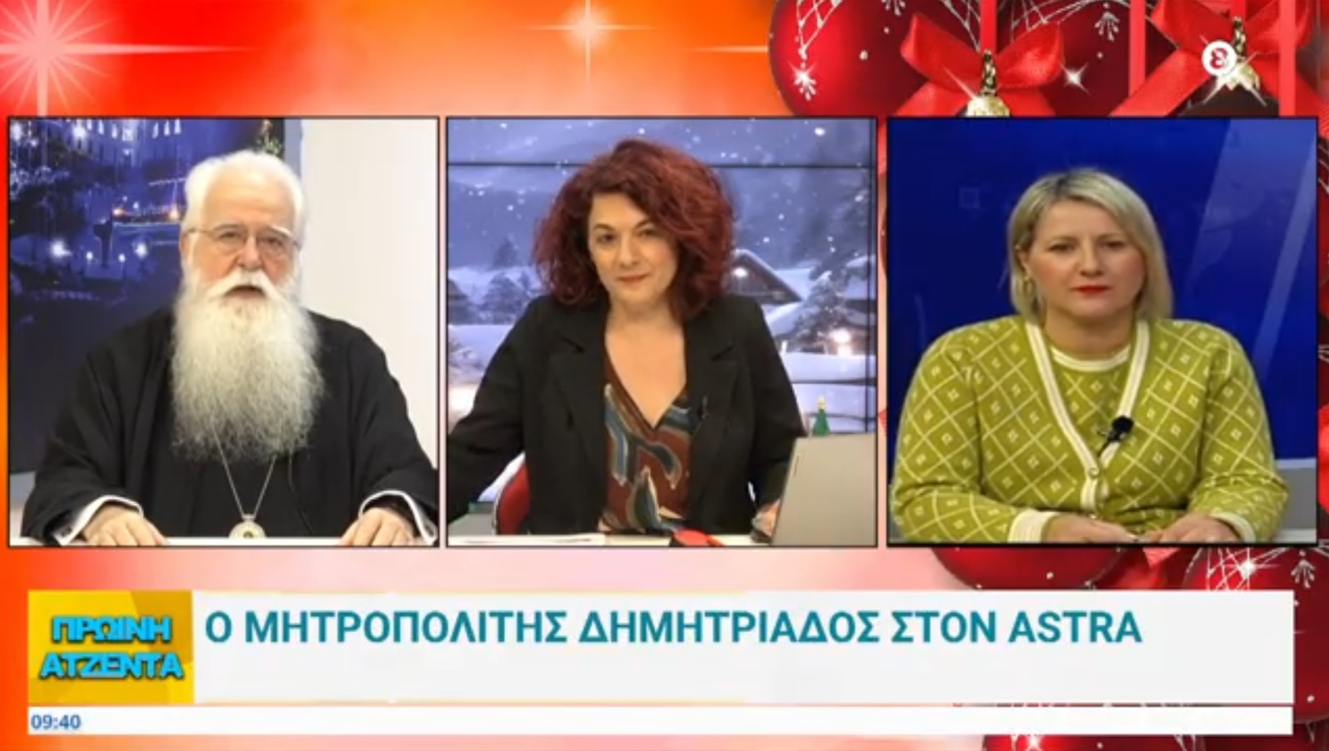 Στην εκπομπή «Πρωινή Ατζέντα» του Astra TV και στις δημοσιογράφους Ειρήνη Θεοδωροπούλου και Σοφία Κοντοθανάση και μίλησε ο Σεβ. Μητροπολίτης Δημητριάδος κ. Ιγνάτιος, αναφερόμενος στη σημασία του χρόνου και της κάθε στιγμής στη ζωή του ανθρώπου. Όπως χαρακτηριστικά σημείωσε, «το παρελθόν δεν αλλάζει, το μέλλον δεν ξέρουμε αν μας ανήκει, το μόνο που πραγματικά έχουμε είναι η στιγμή», τονίζοντας ότι όταν αυτή η στιγμή γίνεται «ζωή αγάπης, προσφοράς και θυσίας», τότε αποκτά αιωνιότητα. Παράλληλα, επισήμανε ότι τα τελευταία χρόνια παρατηρείται έντονα η επιστροφή των ανθρώπων – και ιδιαίτερα των νέων – στην Εκκλησία, υπογραμμίζοντας πως «ο άνθρωπος είναι γεννημένος για να ζει με τον Θεό» και πως μπροστά στην αβεβαιότητα και τον φόβο αναζητά ελπίδα και πνευματική γαλήνη.