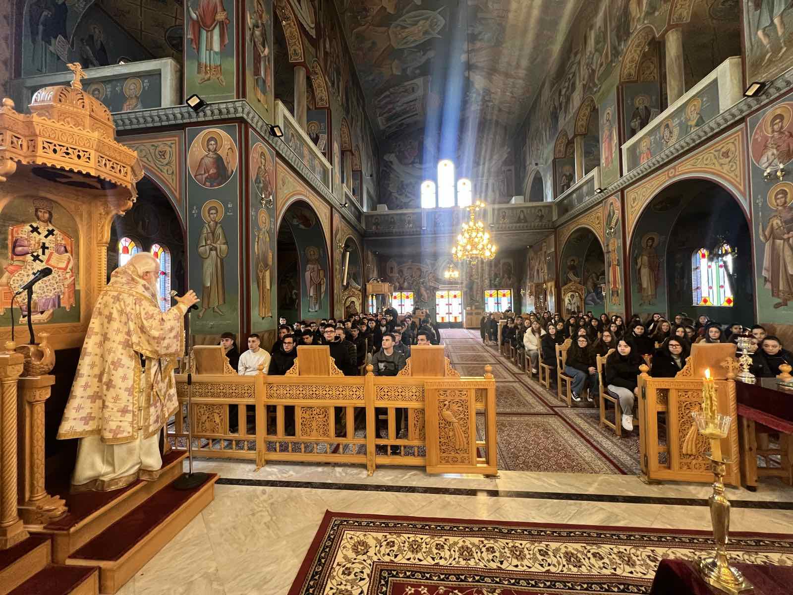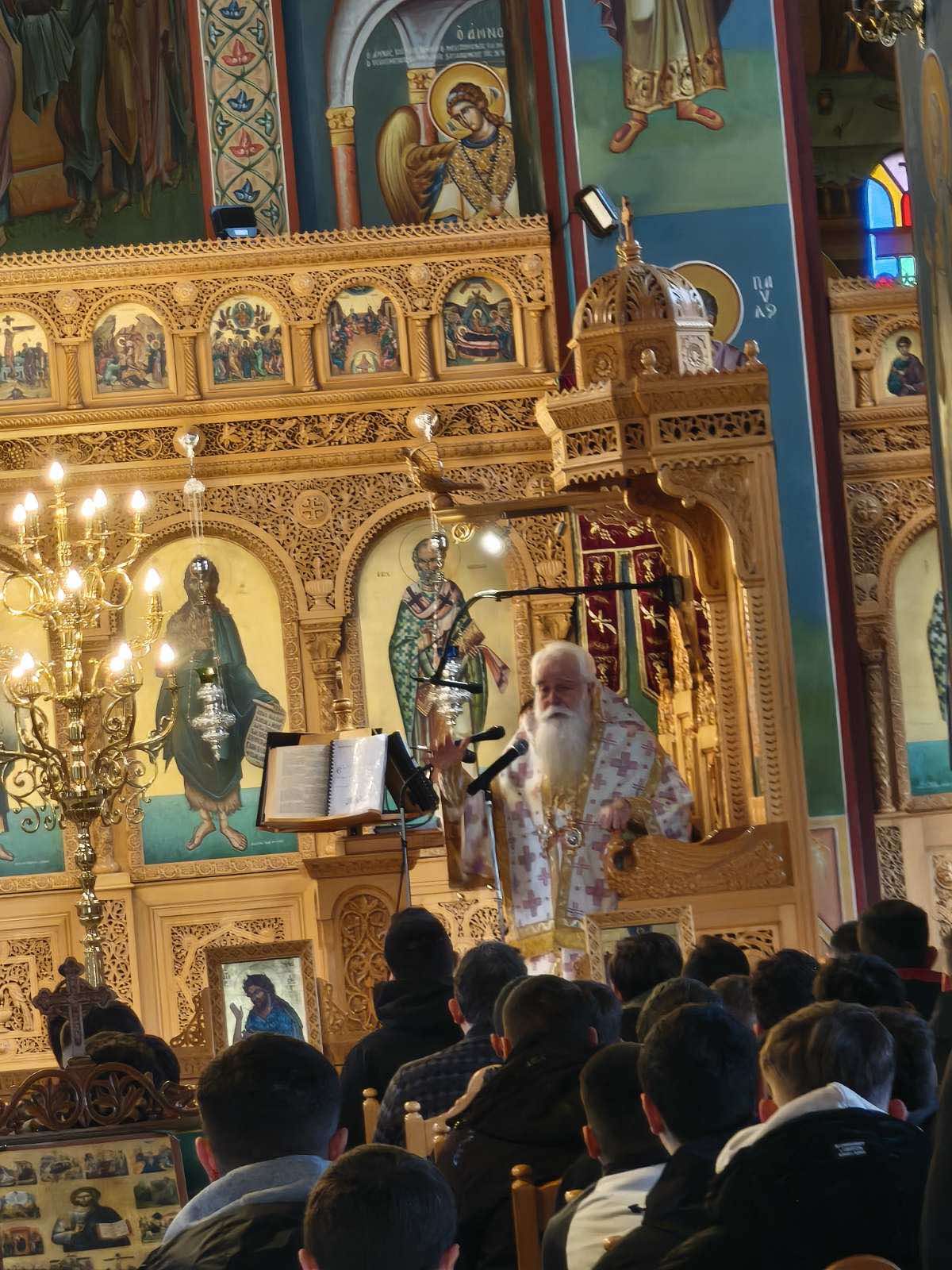 Στην ομιλία του προς τους μαθητές και τις μαθήτριες, ο Σεβ. Ιγνάτιος ανέπτυξε με απλό, κατανοητό και βιωματικό λόγο το βαθύ νόημα της Θείας Ευχαριστίας και της χριστιανικής αγάπης, επισημαίνοντας ότι: «Η Θεία Ευχαριστία δεν είναι κάτι μαγικό ούτε κάτι τυπικό. Είναι η πρόσκληση του Χριστού να είμαστε μαζί Του. “Θέλω να είμαι μαζί σου, θέλω να είσαι μέσα μου, θέλω να ζήσεις την Ανάστασή μου”». Σε άλλο σημείο της ομιλίας του, υπογράμμισε τον χαρακτήρα της αγάπης ως στάσης ζωής, τονίζοντας: «Η λέξη “σ’ αγαπώ” έχει μεγάλη αξία. Να μην τη λέτε εύκολα. Αλλά όταν τη λέτε, να την πιστεύετε. Γιατί η αληθινή αγάπη είναι αιώνια και δεν προδίδει ποτέ». Παράλληλα, ο Σεβασμιώτατος επισήμανε: «Να μάθετε στη ζωή σας να αγαπάτε αληθινά, να μην προδίδετε ποτέ τους ανθρώπους και κυρίως τον Θεό. Ο πραγματικά δυνατός άνθρωπος είναι εκείνος που υπερασπίζεται τον αδύναμο, την αλήθεια και τη δικαιοσύνη». Ολοκληρώνοντας την ομιλία του, ευχήθηκε στους μαθητές να ζήσουν την αγάπη ως εμπειρία ζωής, μέσα στην οικογένεια, στο σχολείο και στην κοινωνία, επισημαίνοντας ότι η Εκκλησία παραμένει πάντοτε χώρος ενότητας, ελπίδας και αληθινής ελευθερίας.