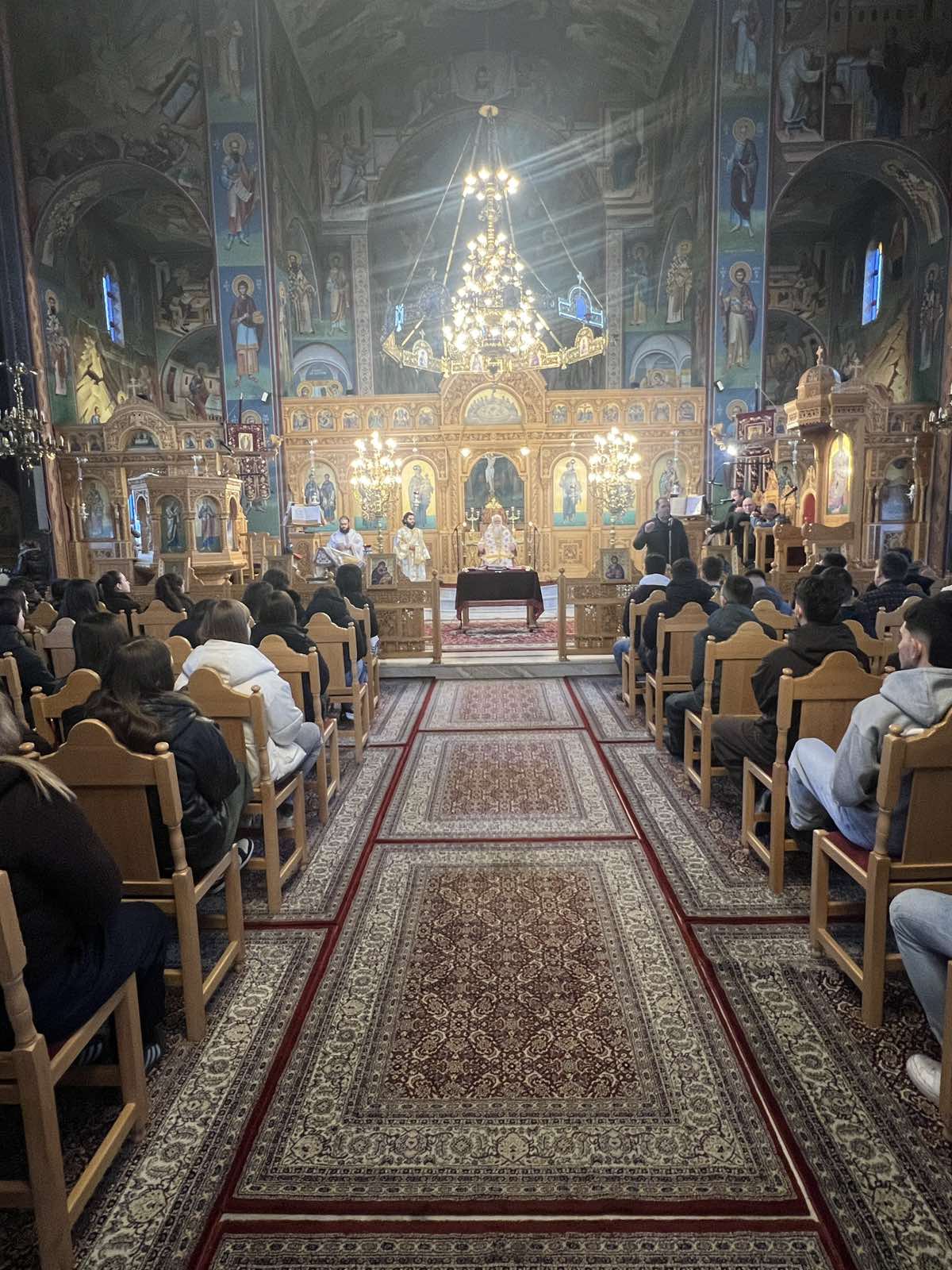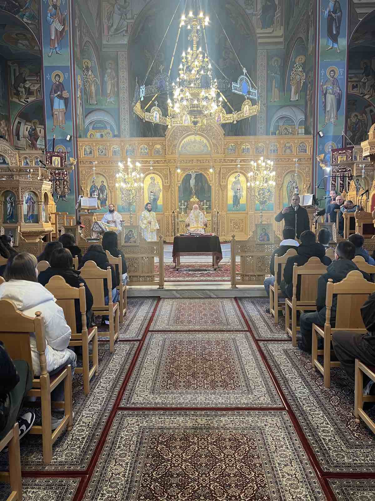 Στο πλαίσιο του μαθήματος των Θρησκευτικών, πραγματοποιήθηκε χθες, 23/1, υποδειγματική – κατηχητική Θεία Λειτουργία για τους μαθητές και τις μαθήτριες του 2ου Γενικού Λυκείου Νέας Ιωνίας Βόλου, στον Ιερό Ναό Αγίου Νεκταρίου Νέας Ιωνίας Βόλου. Της Θείας Λειτουργίας προέστη ο Σεβ. Μητροπολίτης Δημητριάδος κ. Ιγνάτιος, ενώ στη λατρευτική σύναξη συμμετείχε το σύνολο των μαθητών του σχολείου, οι οποίοι προσήλθαν σχεδόν καθολικά στη Θεία Κοινωνία των Αχράντων Μυστηρίων. Κατά τη διάρκεια της Θείας Λειτουργίας πραγματοποιήθηκε υποδειγματική – κατηχητική προσέγγιση του Μυστηρίου της Θείας Ευχαριστίας, με τον Θεολόγο – Καθηγητή του 1ου Πειραματικού Γενικού Λυκείου Νέας Ιωνίας, κ. Σωτήριο Τσιτσιρίγκα, να ερμηνεύει τα τελούμενα της λατρείας, αναδεικνύοντας τις ιστορικές, θεολογικές και συμβολικές διαστάσεις της Θείας Ευχαριστίας.