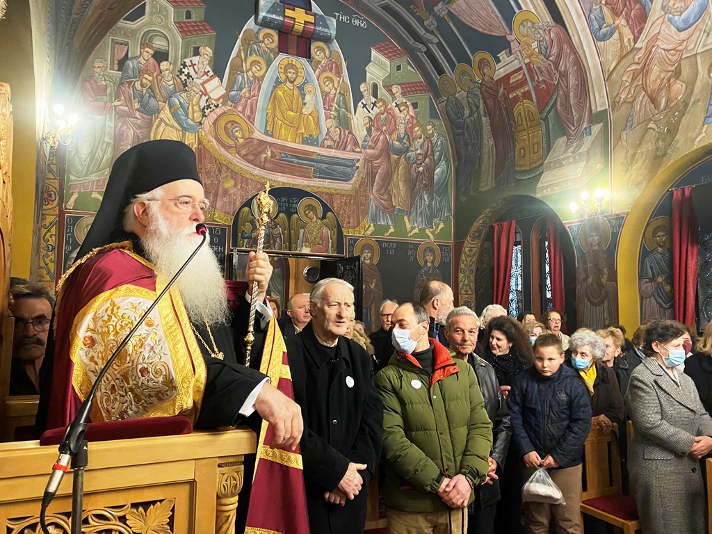 Στο τέλος του Εσπερινού, ο Σεβασμιώτατος χειροθέτησε Πρωτοπρεσβύτερο τον Εφημέριο του Ναού π. Γεώργιο Αναγνωστούλη, τον οποίο ευχαρίστησε για την ευδόκιμη και πολυετή διακονία του στον Άγιο Αντώνιο, ενώ ως Νομικός και γλωσσομαθής, θα μπορούσε να ακολουθήσει άλλον δρόμο στην ζωή του. Εξήρε την πιστότητα, την απλότητα, το ήθος, την τιμιότητά του και το υψηλό αίσθημα ευθύνης, που τον διακρίνει και δεν είναι πάντοτε δεδομένο στους ανθρώπους. Αναφέρθηκε και στην διακονία του στις διοικητικές υπηρεσίες της Μητροπόλεως, ως υπεύθυνος του Αρχείου της Τοπικής μας Εκκλησίας, το οποίο εξαιρετικά επιμελείται. Θύμισε, τέλος, ότι ο Σταυρός, που θα φέρει πλέον ο π. Γεώργιος, «δεν είναι κόσμημα, αλλά η υπενθύμιση ότι φέρουμε στους ώμους μας τον Σταυρό του Χριστού, τις αμαρτίες των ανθρώπων, όπως έπραξε Εκείνος, ότι ο δρόμος μας πρέπει να είναι αυτός της θυσίας και της προσφοράς, όπως του Χριστού, που οδηγεί στην Ανάσταση».