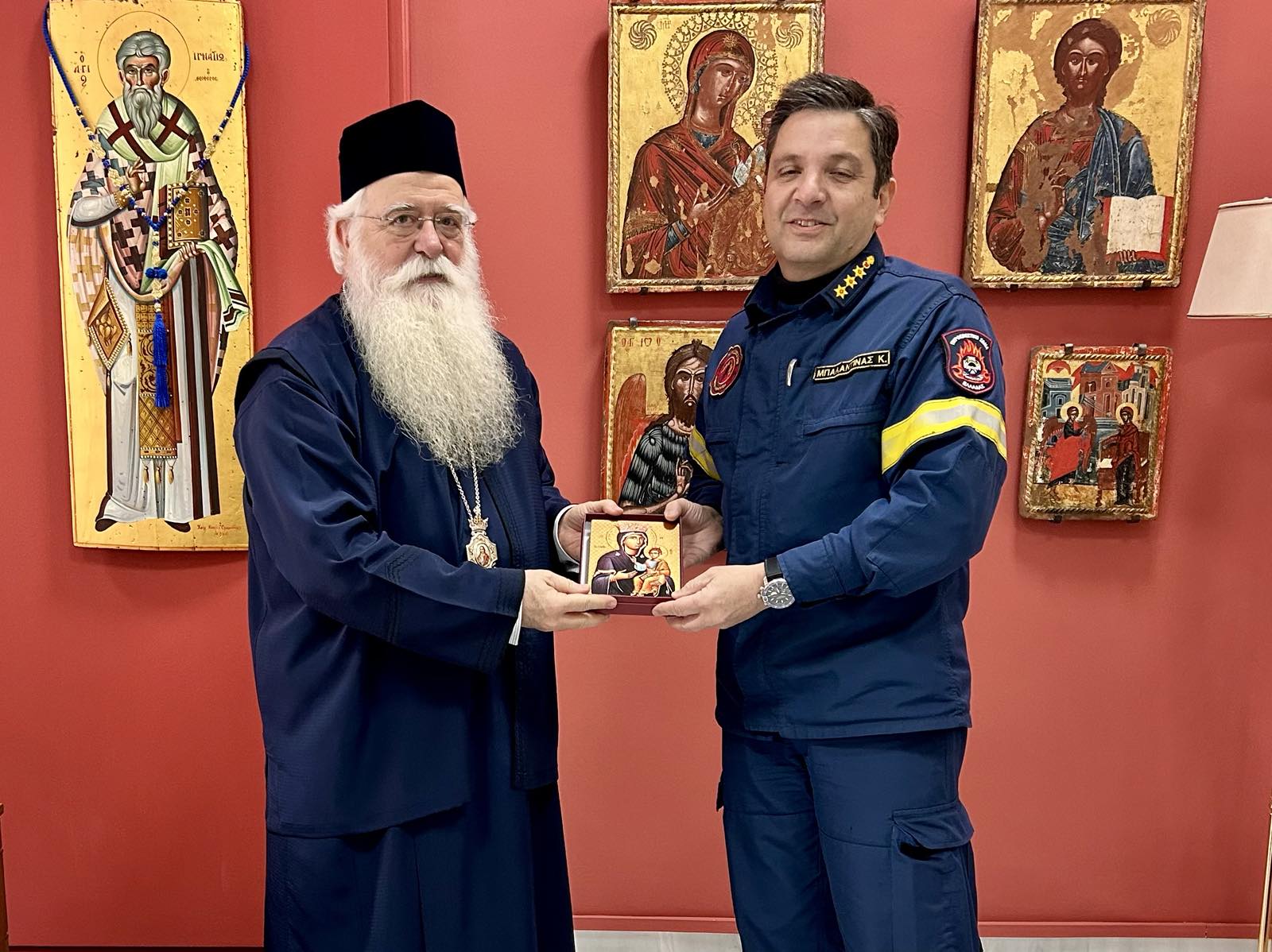 Εθιμοτυπική επίσκεψη πραγματοποίησε στα γραφεία της Ιεράς Μητροπόλεως στο Συνεδριακό Κέντρο Θεσσαλίας ο νέος Διοικητής Πυροσβεστικών Υπηρεσιών Μαγνησίας, Πύραρχος κ. Κωνσταντίνος Μπαλαντίνας, προς τον Σεβασμιώτατο Μητροπολίτη Δημητριάδος κ. Ιγνάτιο.
