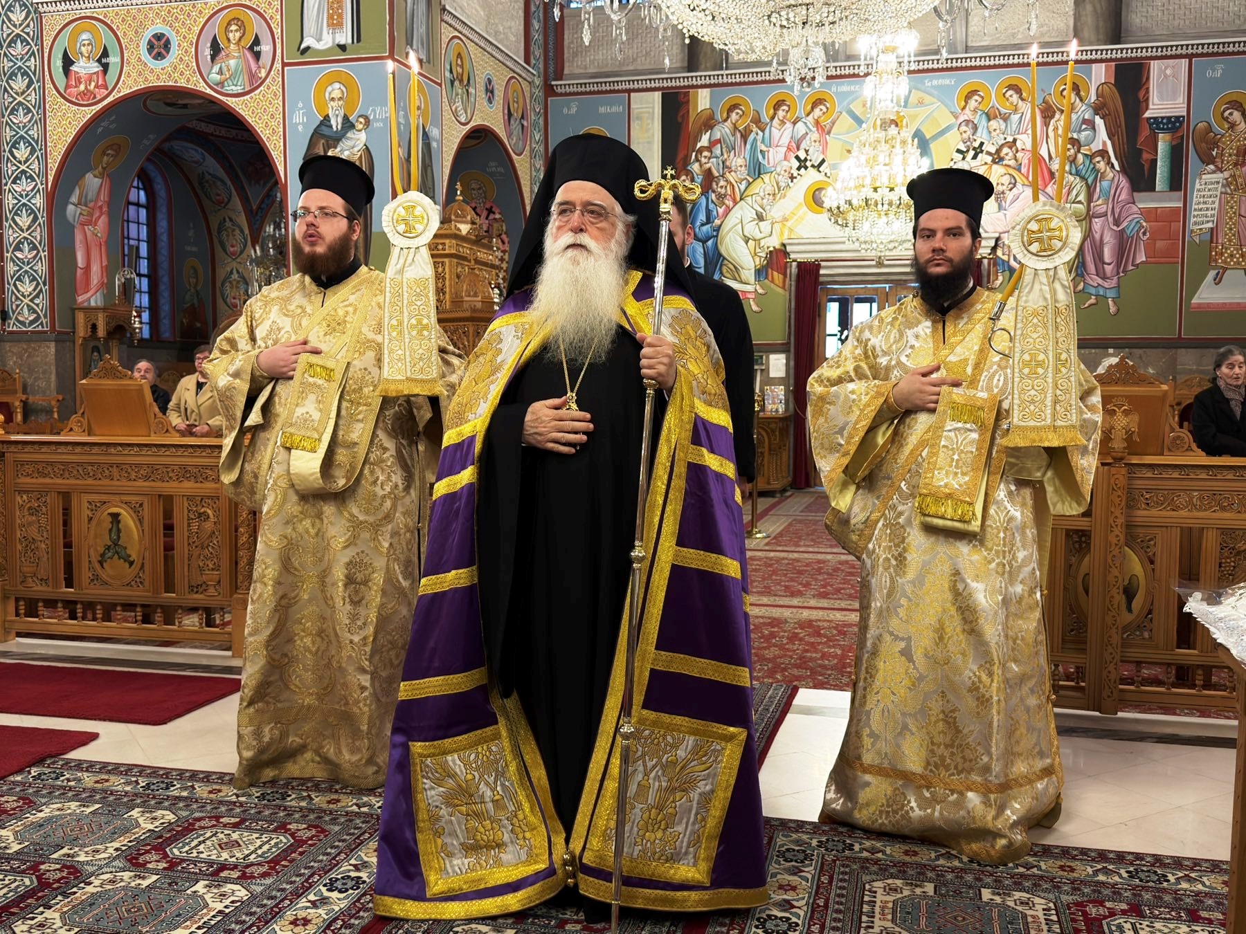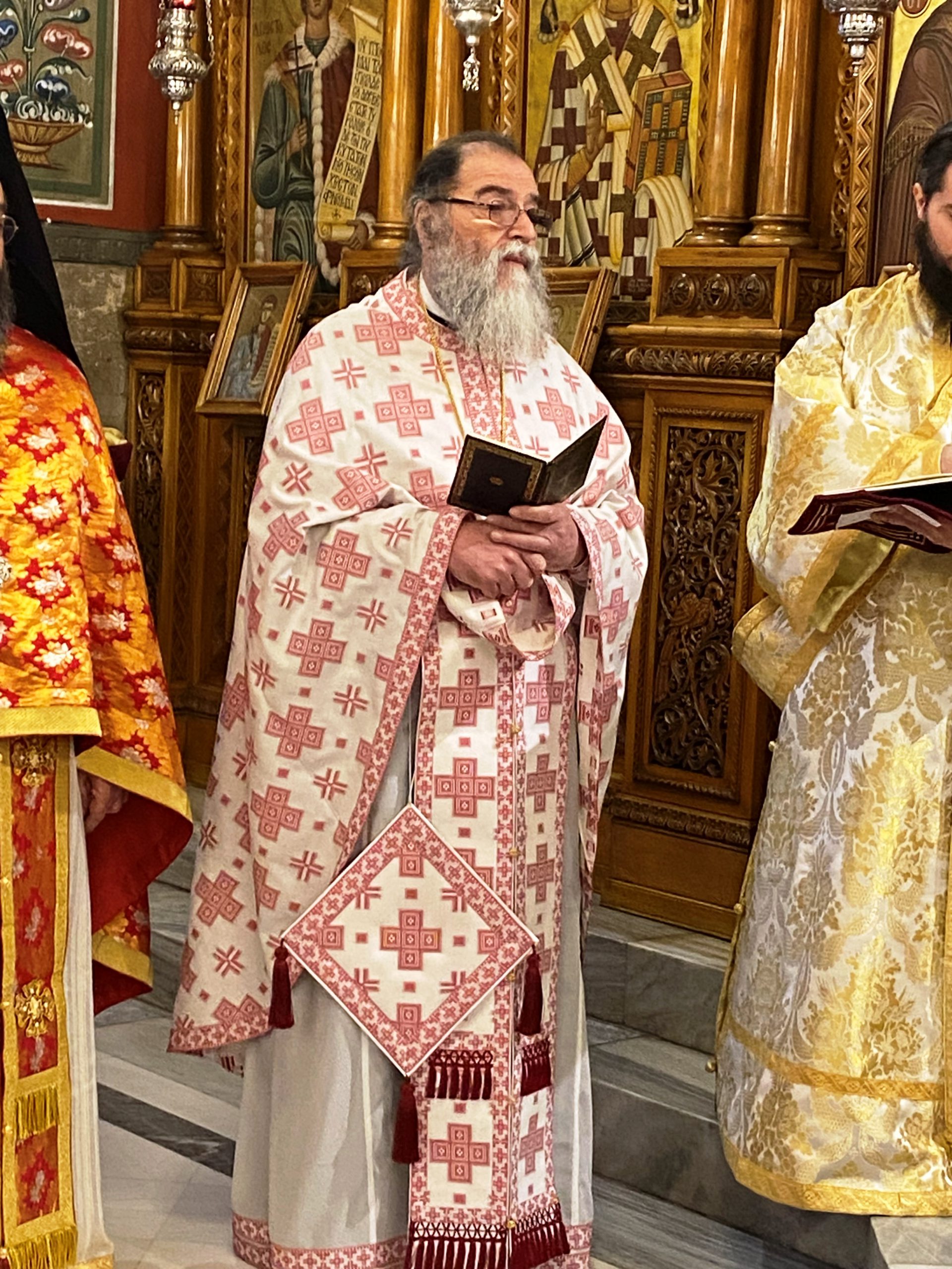 Στο τέλος της Θείας Λειτουργίας, ο Προϊστάμενος της Ενορίας, Αρχιμ. Επιφάνιος Οικονόμου, αναφέρθηκε στον σήμερα εορταζόμενο τ. Εφημέριο του Ναού Πρωτοπρεσβύτερο Θεόδωρο Μπατάκα, ο οποίος από την αρχή του 2026 ανήκει, πλέον, στην χορεία των συνταξιούχων Κληρικών της Τοπικής μας Εκκλησίας. Ο π. Επιφάνιος μίλησε, με συγκίνηση και ευγνωμοσύνη, για τα σαράντα επτά (47) έτη Ιερατικής διακονίας του π. Θεοδώρου, εκ των οποίων τα σαράντα (40) ήταν αφιερωμένα στον Πολιούχο μας Άγιο Νικόλαο, όπου διεξήγαγε σπουδαίο έργο, Λειτουργικό, Ιεροκηρυκτικό, πνευματικής πατρότητας, αλλά και κοινωνικής φιλανθρωπίας και προσφοράς, ως Πρόεδρος του ενοριακού Φιλοπτώχου Ταμείου. Ο π. Επιφάνιος εξήρε το ταπεινό φρόνημα του π. Θεοδώρου, την διάκριση, την θυσιαστική του αγάπη, το γνήσιο εκκλησιολογικό και ιερατικό του ήθος, μακριά από ακρότητες και φανατισμούς και εξέφρασε την ευγνωμοσύνη των συνεφημερίων του, του Εκκλ/κού Συμβουλίου, των Ιεροψαλτών και λοιπών στελεχών του Μητροπολιτικού μας Ναού προς τον π. Θεόδωρο, για την μέχρι τούδε προσφορά του, η οποία ασφαλώς θα συνεχιστεί χωρίς το βάρος και την ευθύνη της διοικήσεως και των εφημεριακών καθηκόντων. Τόνισε, μάλιστα, ότι ο π. Θεόδωρος και ο πολιός Γέροντας Πρωτ. Βασίλειος Ακριβόπουλος, είναι πλέον τα δύο γερά πνευματικά αγκωνάρια της ενορίας, παραδείγματα ιερατικού ήθους και αδιάλειπτης προσροφάς για τους νεωτέρους. Ζήτησε δε από τον Σεβασμιώτατο να απονείμει στον π. Θεόδωρο, εκ μέρους της ενορίας, επιστήθιο Ιερατικό σταυρό και την ιερά Εικόνα του Πολιούχου μας Αγίου Νικολάου, εις ένδειξιν τιμής και ευγνωμοσύνης.