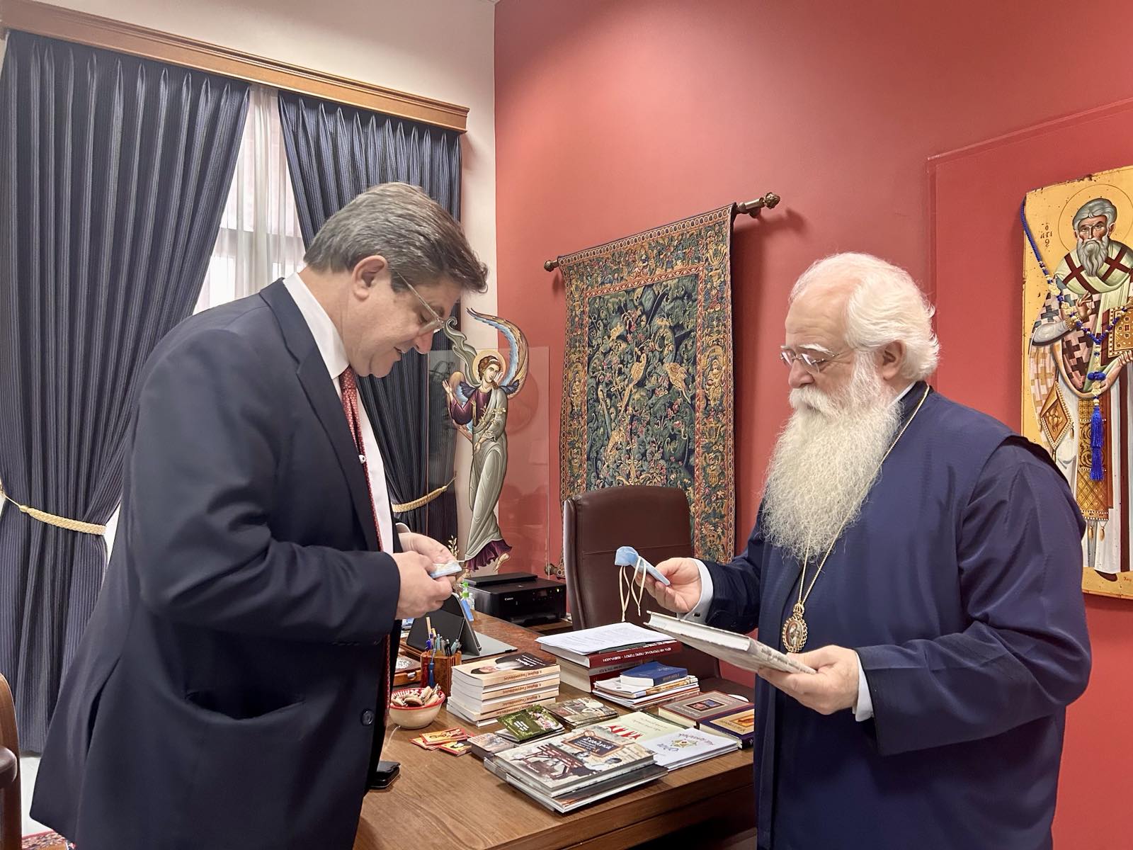 Τον κ. Γιώργο Ξηραδάκη, μέλος της Διοικούσης Επιτροπής του Αχιλλοπουλείου Ιδρύματος και Ναυτιλιακό Οικονομολόγο, δέχθηκε σήμερα στο γραφείο του ο Σεβ. Μητροπολίτης Δημητριάδος κ. Ιγνάτιος, στο Συνεδριακό Κέντρο Θεσσαλίας στα Μελισσάτικα.