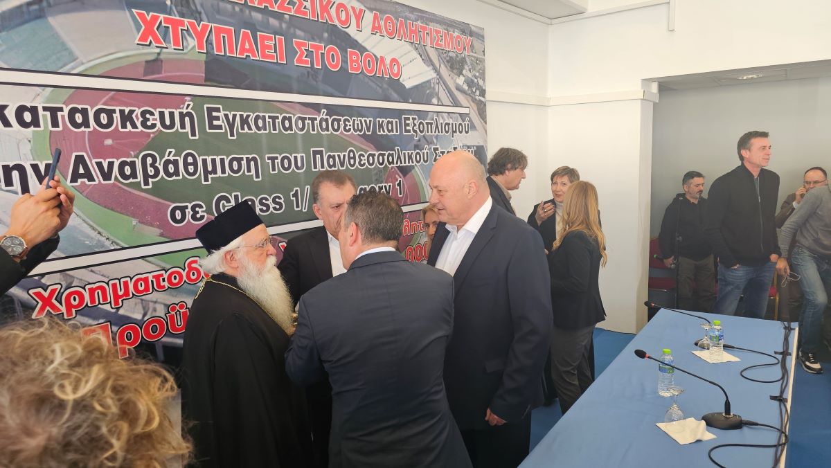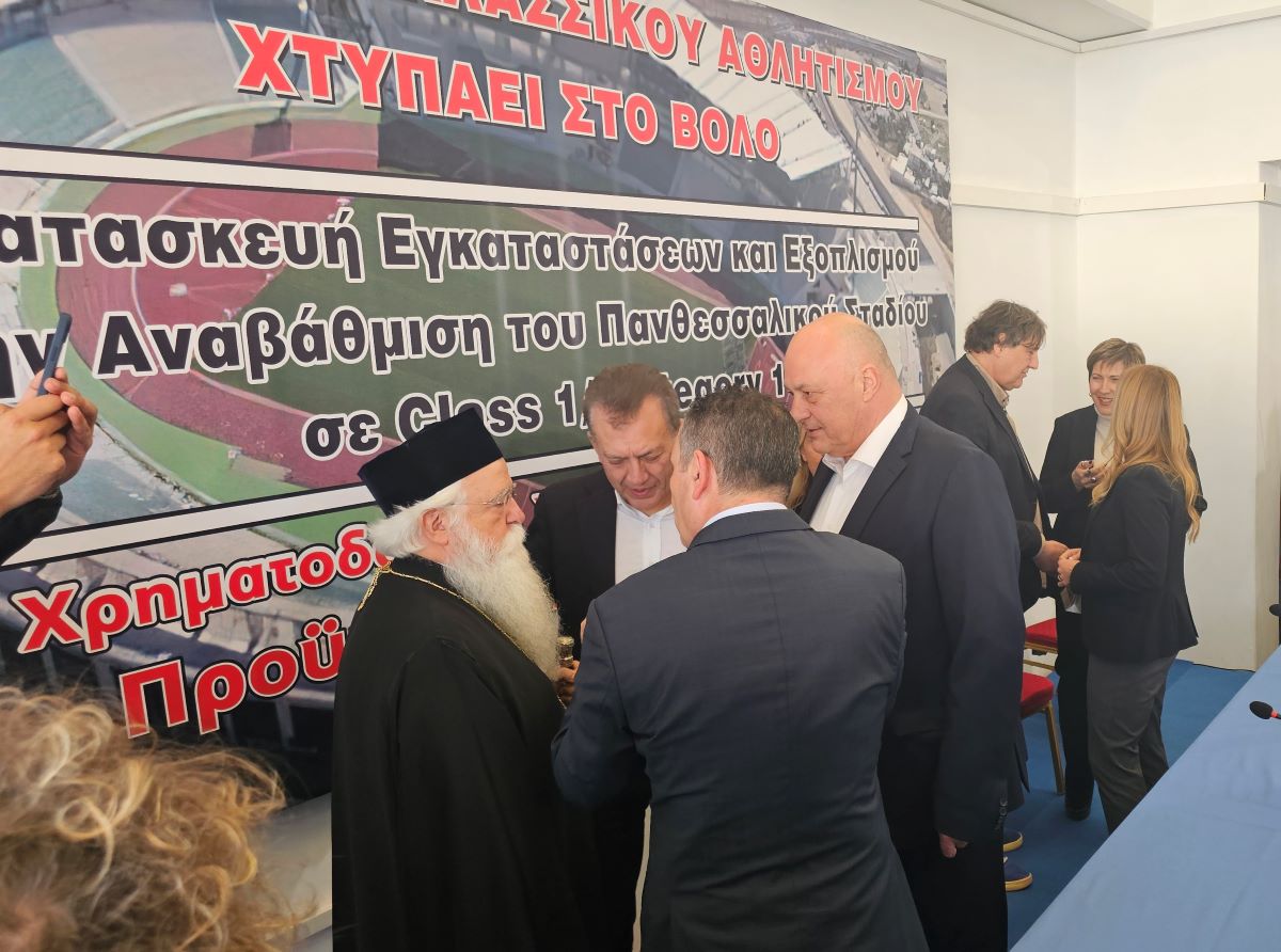 Στη συνέντευξη για την αναβάθμιση του Πανθεσσαλικού Σταδίου, που πραγματοποιήθηκε σήμερα 27/2, βρέθηκε ο Σεβ.Μητροπολίτης Δημητριάδος κ. Ιγνάτιος, ως Πρόεδρος του Αθλητικού Συλλόγου Α.Σ. Δημητριάς της Ιεράς Μητροπόλεως Δημητριάδος.