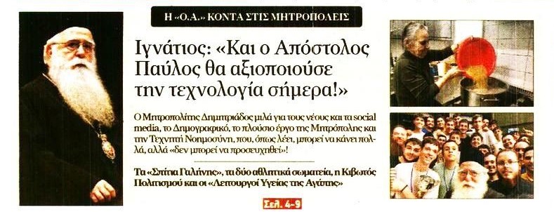 Συνέντευξη Σεβ.Δημητριάδος κ.Ιγνατίου στην “Ορθόδοξη Αλήθεια”: “Και ο Απόστολος Παύλος θα αξιοποιούσε την τεχνολογία σήμερα”
