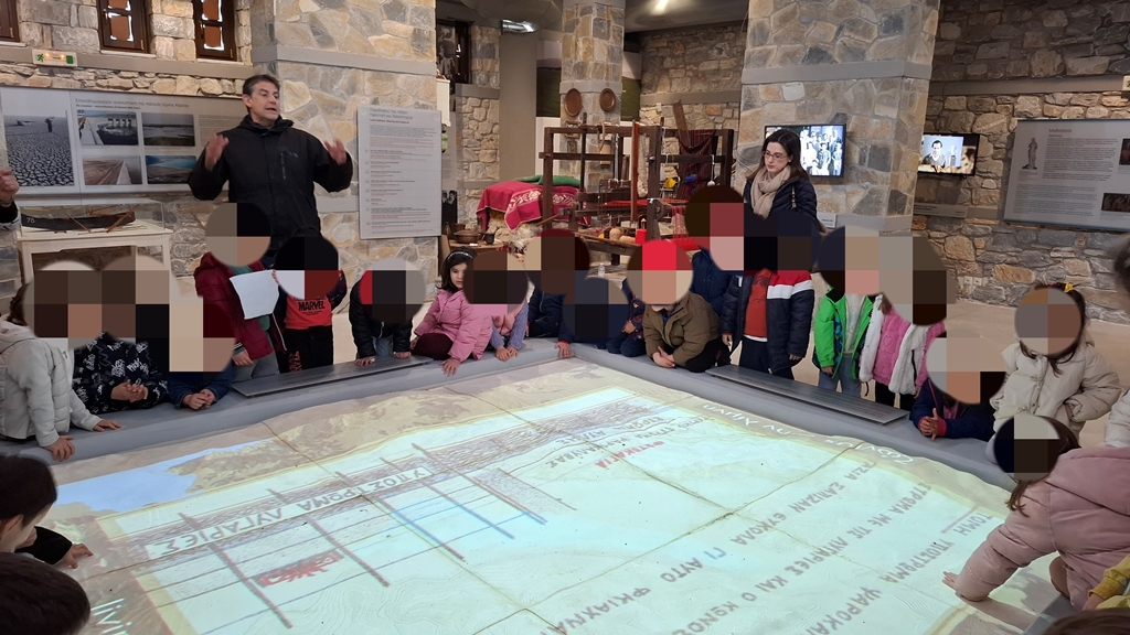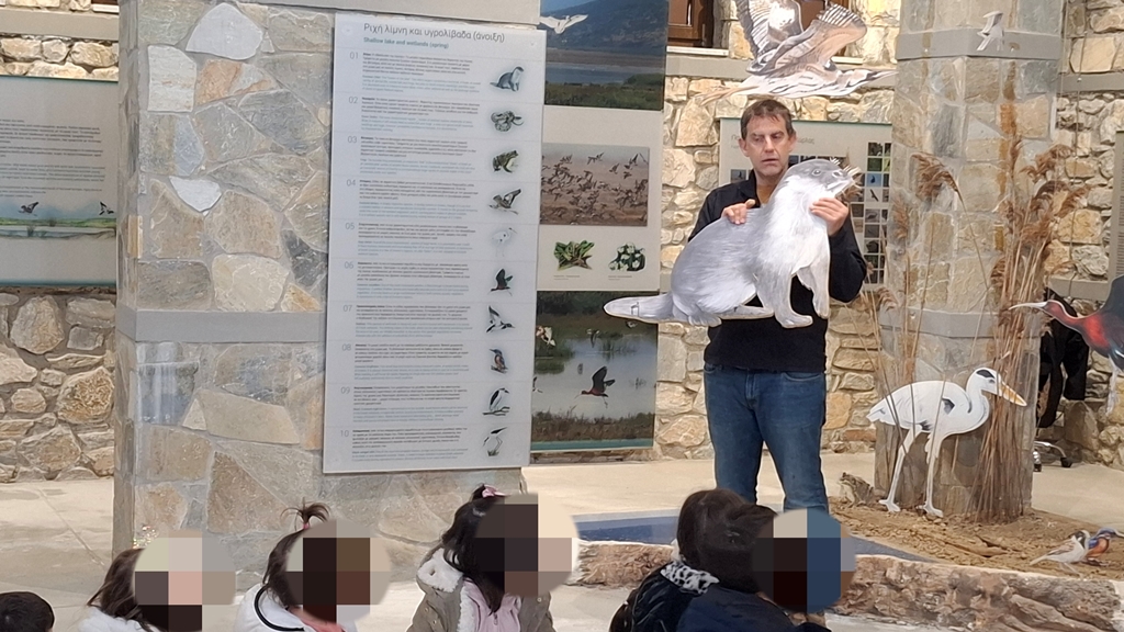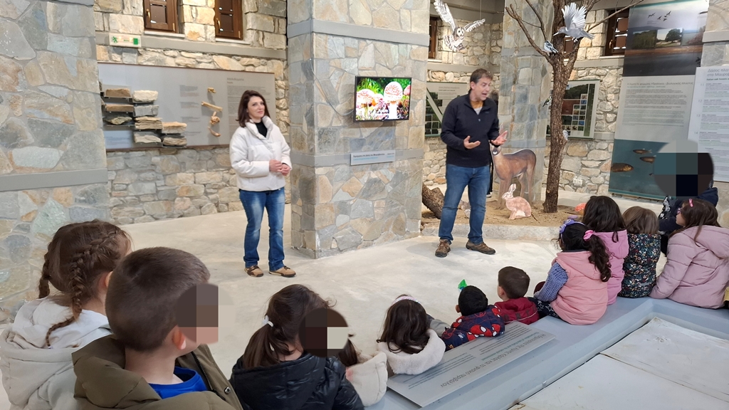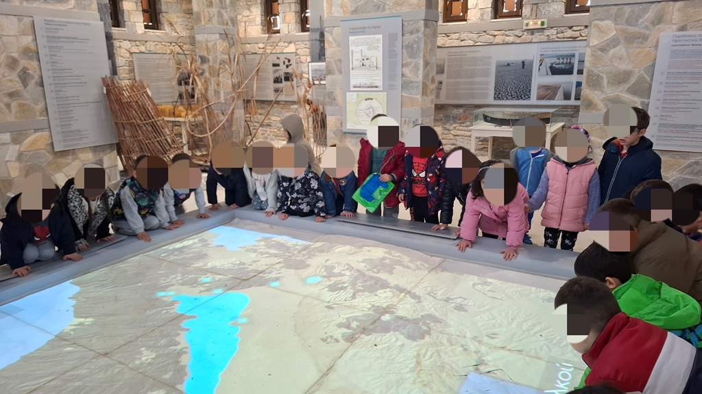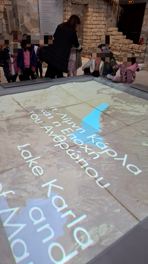 Κατά την άφιξή μας, μας υποδέχτηκαν με ιδιαίτερη χαρά το επιστημονικό προσωπικό του μουσείου, καθώς και τα μέλη της Διεύθυνσης Δασών Μαγνησίας. Ο κ. Ιωάννης Βέργος ανέλαβε την ξενάγηση των παιδιών στις δύο αίθουσες του εκθεσιακού κέντρου. Με τρόπο απλό, κατανοητό και άκρως ενδιαφέρον, μίλησε στα παιδιά για τη Λίμνη Κάρλα, τους πρώτους οικισμούς που αναπτύχθηκαν γύρω από αυτήν, τη ζωή των ανθρώπων και τη διαχρονική σημασία της περιοχής.