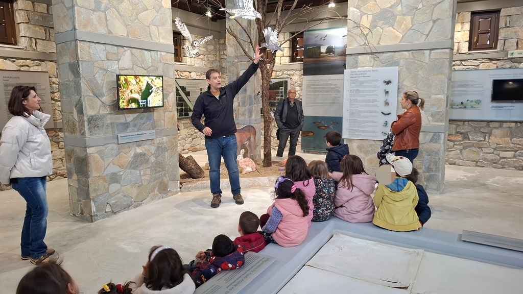 Στη δεύτερη αίθουσα, η ξενάγηση επικεντρώθηκε στη χλωρίδα και την πανίδα της περιοχής. Τα παιδιά γνώρισαν τα πουλιά που ζουν ή μεταναστεύουν στη λίμνη, ανακαλύπτοντας τον πλούτο της τοπικής βιοποικιλότητας. Ιδιαίτερη εντύπωση τους έκανε το κιρκινέζι, ένα είδος γερακιού που συναντάται συχνά στην περιοχή, ενώ στο τέλος της επίσκεψης έλαβαν μια σχετική κατασκευή ως αναμνηστικό.